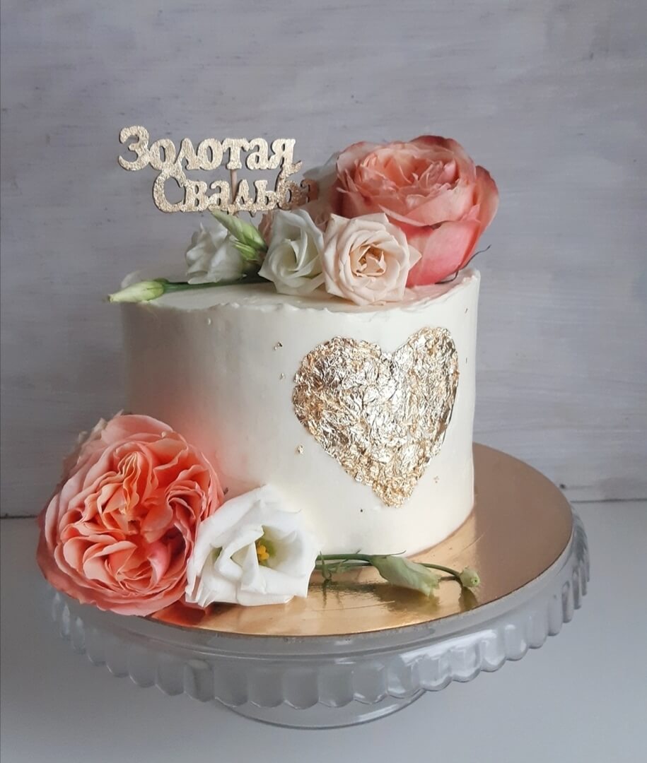Чудесный нежный торт, декорированный не менее нежными цветами на трепетный праздник золотой свадьбы